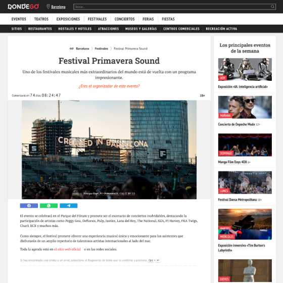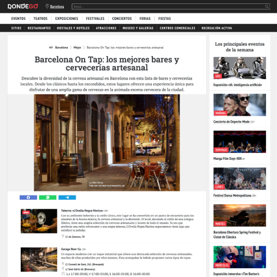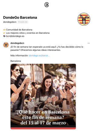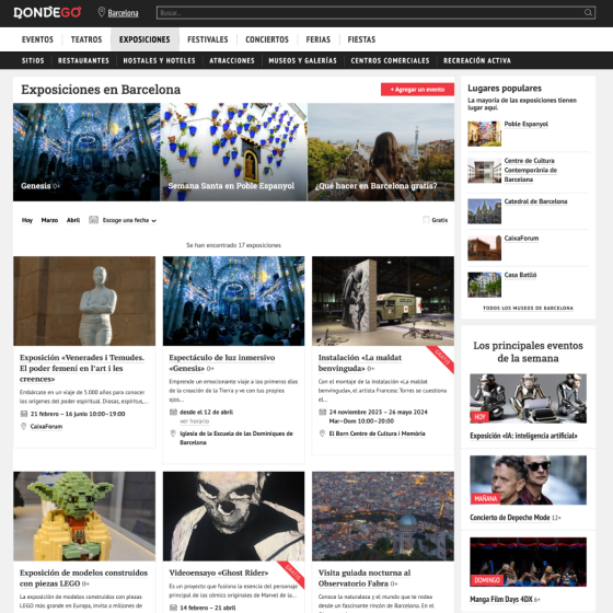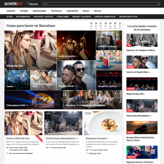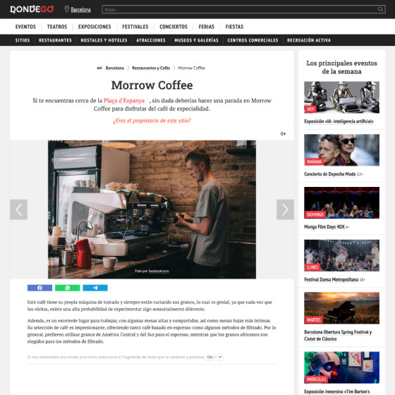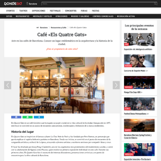 DondeGo Barcelona. Servicio para buscar y promocionar eventos y lugares en Barcelona. Nosotros formamos un calendario de atracciones y creamos un mapa de lugares interesantes de la ciudad, ofreciendo a los lectores un ocio activo.